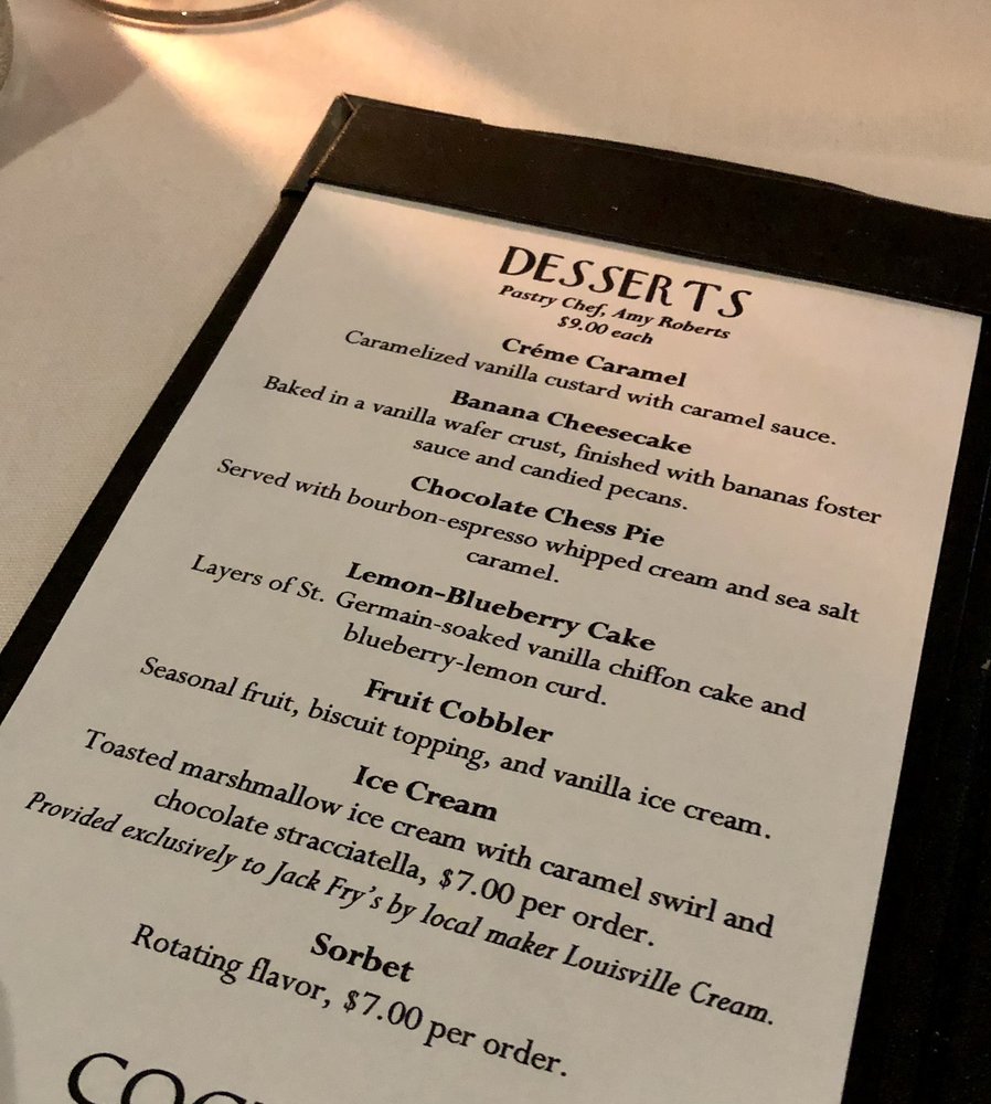 Toasted marshmallow ice cream with caramel swirl and chocolate stracciatella. Provided exclusively to Jack Fry's by local maker Louisville Cream.